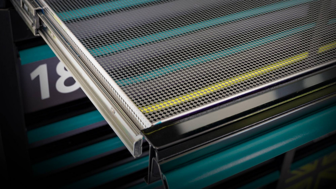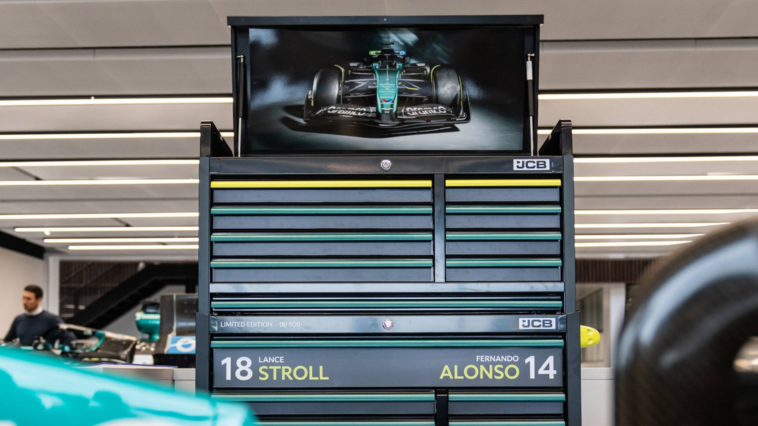 JCB Tools is proud to collaborate with Aston Martin Aramco Formula One® in creating a limited edition tool chest. This premium tool chest is draped in the team's unique colours, designed for fans and professionals alike, symbolising precision, power, and performance.